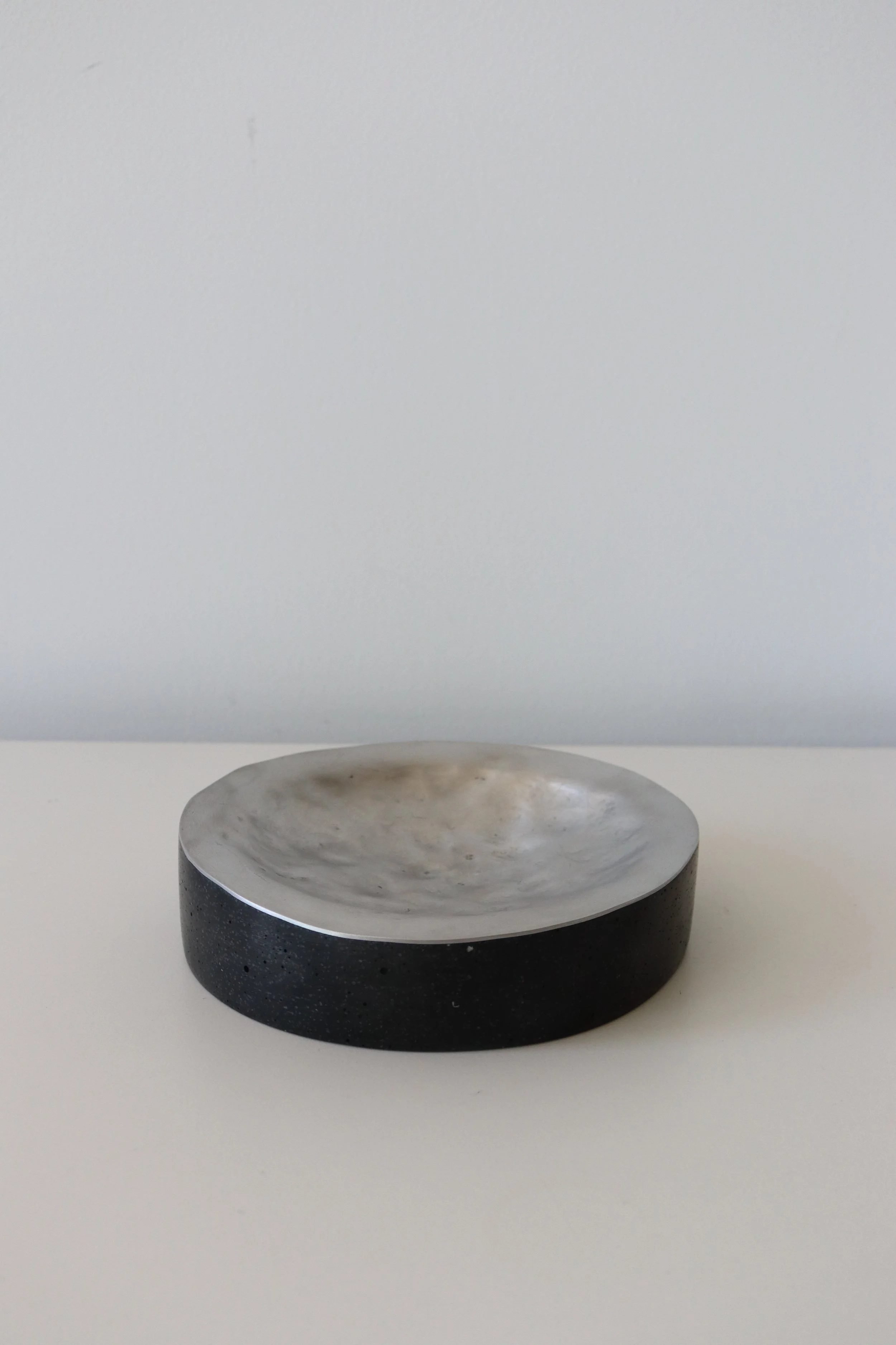 Hammered aluminium, Jesmonite and white sand